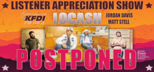 Remember, if you have tickets already for the KFDI Listener Appreciation Show, hang on to them. A new date is coming.