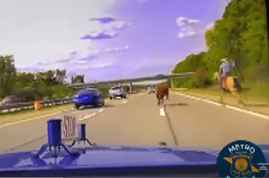 It seems, this one cow, had a beef with being being confined to it’s pen and it busted out. The trouble was, the farm that the cow did the jailbreak from, was near I-75, a pretty busy highway outside of Detroit. Running along the side of the road and sometimes into traffic, motorists were in an UDDER panic as they tried to MOOOVEEE over. Here’s how it all went down.
