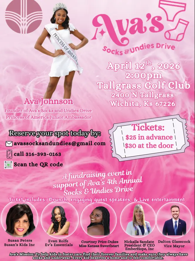 She’s a pageant winner, a track star, and the founder of a non-profit that helps foster kids. Ava Johnson is a remarkable young lady, and at 12, she has her sights set on her next fundraiser here in Wichita on April 12. But, she’s not stopping there; she’s ready to take her efforts around the world, and she can with your help. Listen to my interview with Ava, learn more about her, and what she has planned.