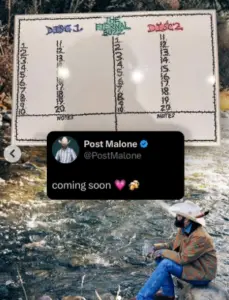 Post Malone is teasing new music, A LOT of new music. Posty is teasing a new 40-track double album, called “The Eternal Buzz.” In an image he posted on the socials, there’s a whiteboard with The Eternal Buzz at the top and Disc 1 and Disc 2 beneath it. Each disc appears to feature twenty tracks, with the song titles yet to be penciled in.